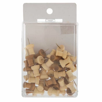 Stick out naturally with Wood Push Pins! These natural wood push pins featureย light brown and dark brownย tops that will add an earthy look to your cork memo boards. Paint or embellish the ends for a personalized look, or keep them as is and push them into a board or wall as you organize your life.