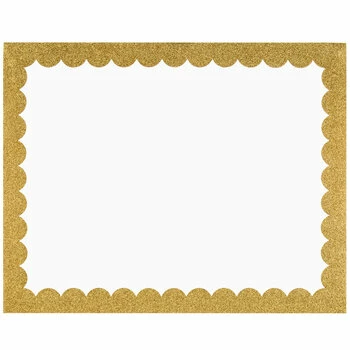 Customize your way to greatness with Gold Glitter Trim Poster Board. Featuring a beautiful gold glitter scalloped border, this board will support paints, glitter, fabric embellishments, and some glues. Make signs for school projects, art projects, science fairs, and so much more!